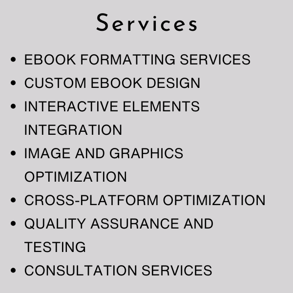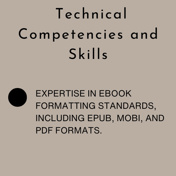 - Expertise in ebook formatting standards, including EPUB, MOBI, and PDF formats.