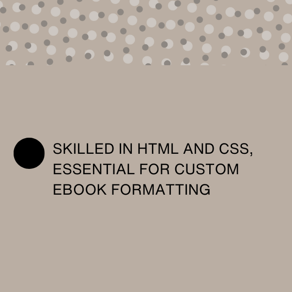 - Skilled in HTML and CSS, essential for custom ebook formatting.
