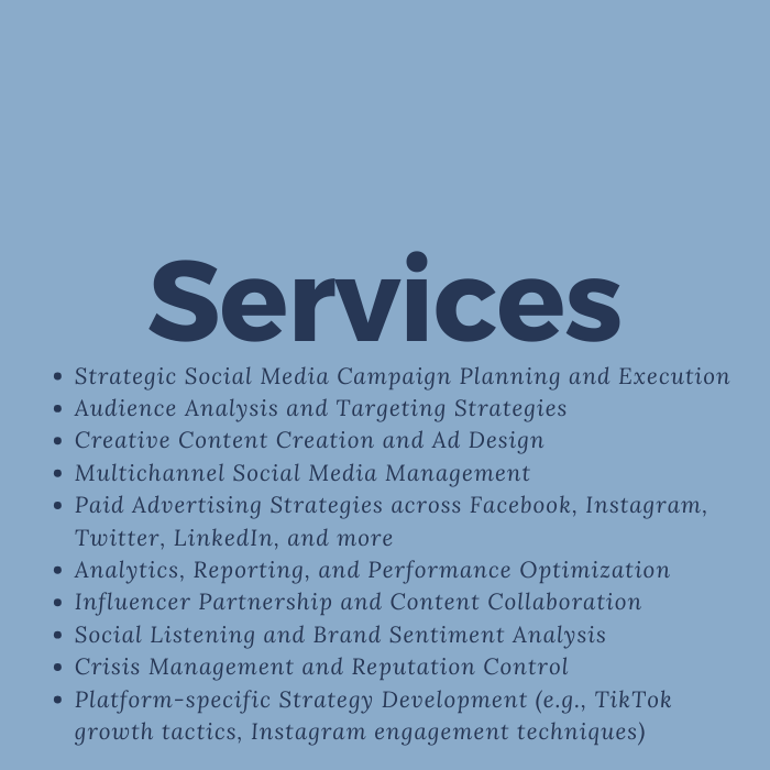 I am driven by the goal of helping brands connect with their audiences in innovative and impactful ways. By staying ahead of the curve on social media trends and algorithm shifts, I ensure that your campaigns lead to high engagement, greater brand awareness, and a strong return on investment.